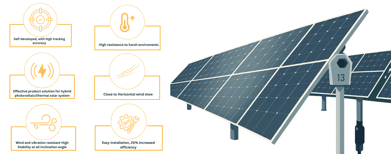 Multi-Point Drive Tracker – Ensures smooth and synchronized movement for optimized solar energy capture.