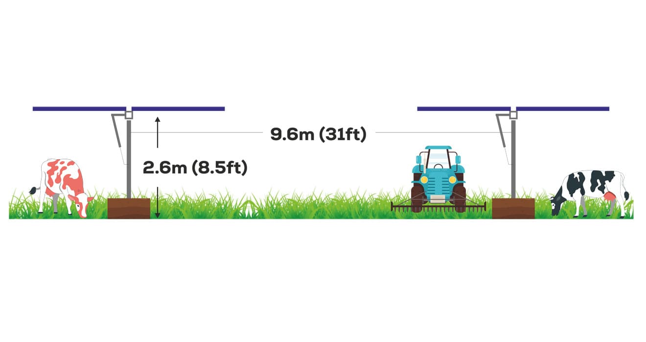 - Agricultural Compatibility: The height of 2.6 meters (8.5 ft) beneath the solar panels allows for safe livestock movement and agricultural machinery to operate below.